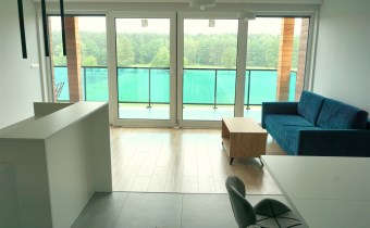 - przestronny salon z aneksem kuchennym oraz wyjściem na taras z pięknym widokiem na las i stawy