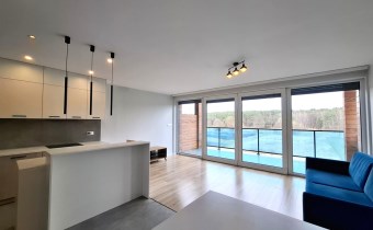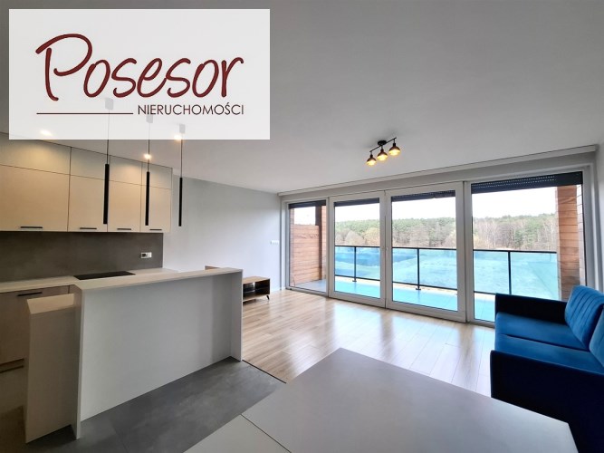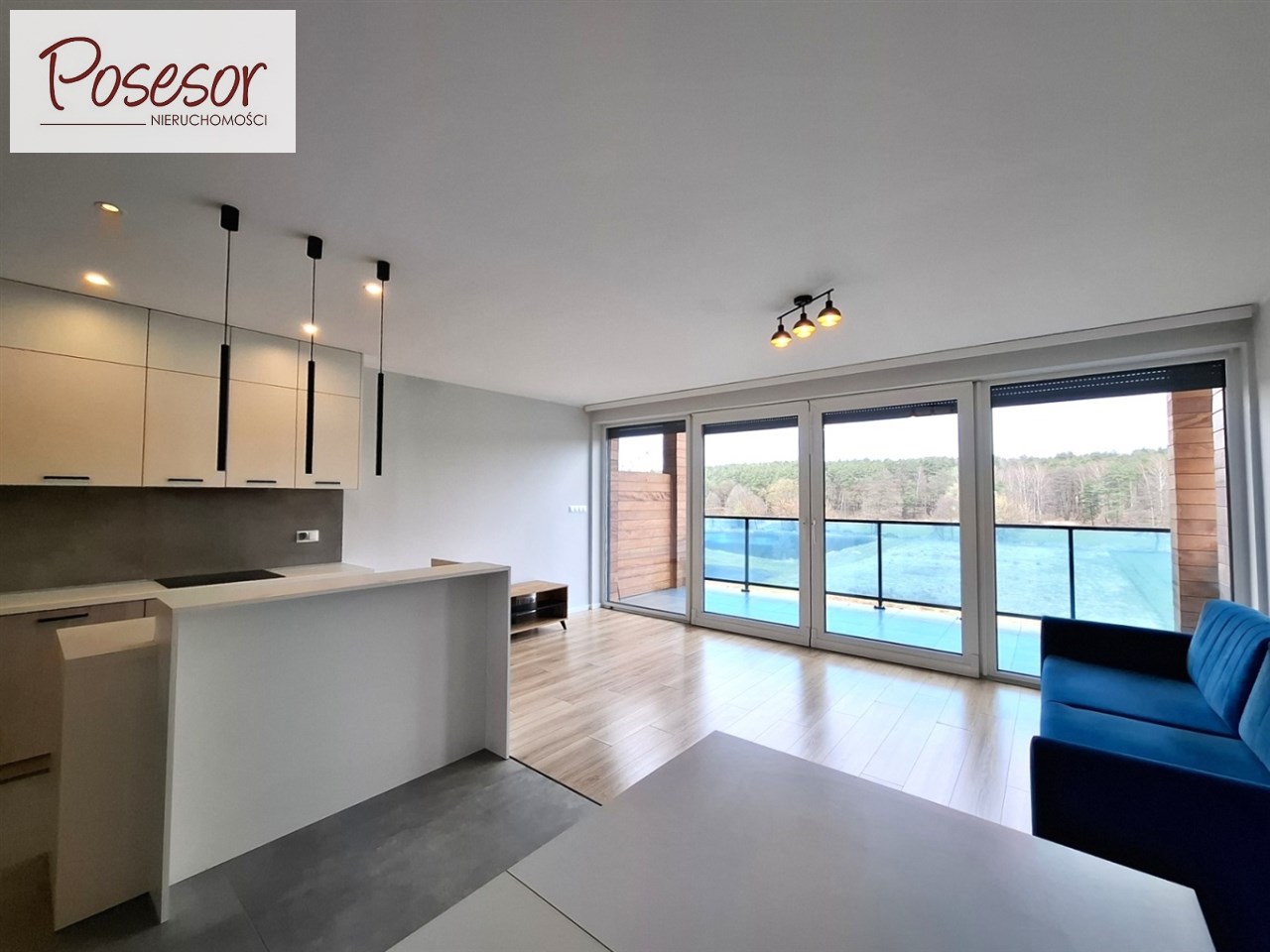 - przestronny salon z aneksem kuchennym oraz wyjściem na taras z pięknym widokiem na las i stawy