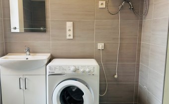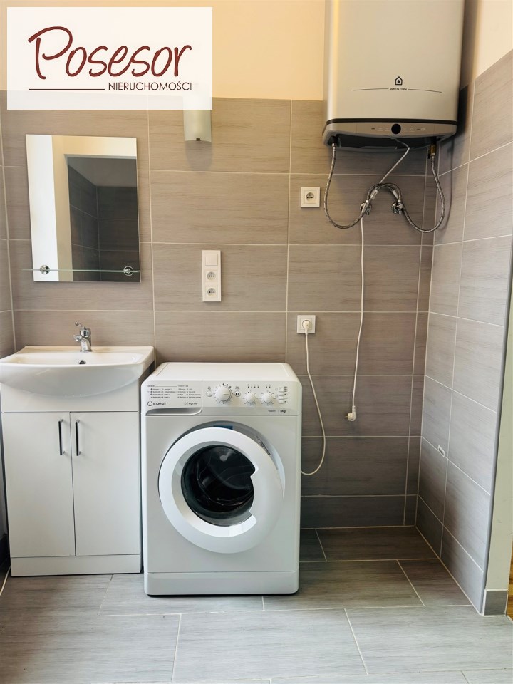 • łazienka z WC po generalnym remoncie, wyposażona w pralkę,